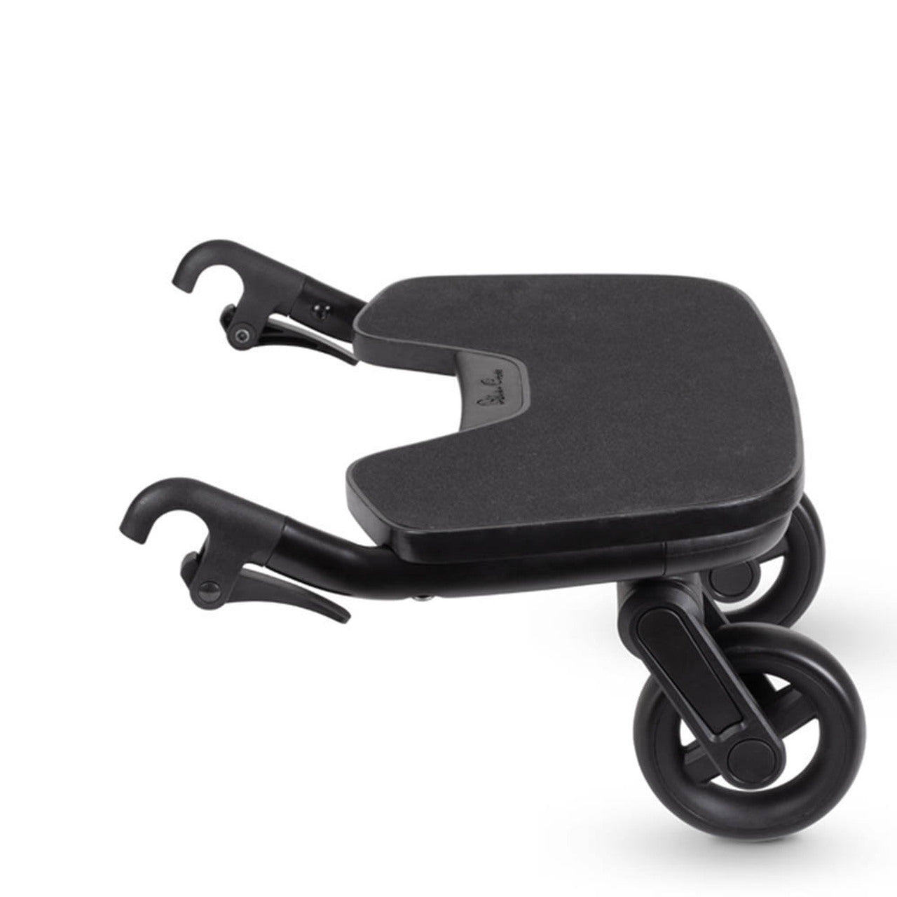 This ride-on board clicks on effortlessly and when not in use, it folds away with the pushchair.